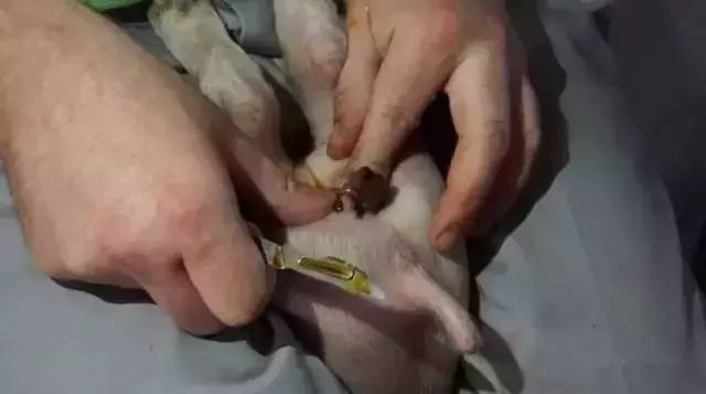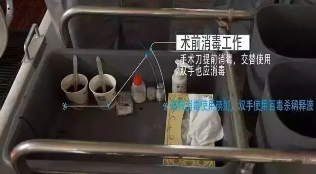 手术前对手术器具以及术者手臂使用百毒杀稀释液进行消毒处理。