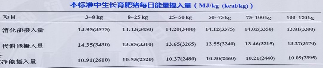 营养需要量表:同时给出消化能、代谢能和净能的需要量。