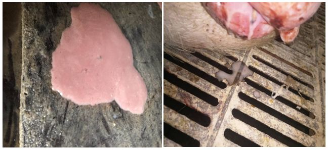 母猪产后我们会看到产床、产床下或者母猪阴户周围有很多恶露,这都是正常现象,它会从产后第1天大量稀薄的液体变成产后3天左右变成少量白色牛奶样,但是恶露呈现以下几种情况则需要重点观察,及时处理。