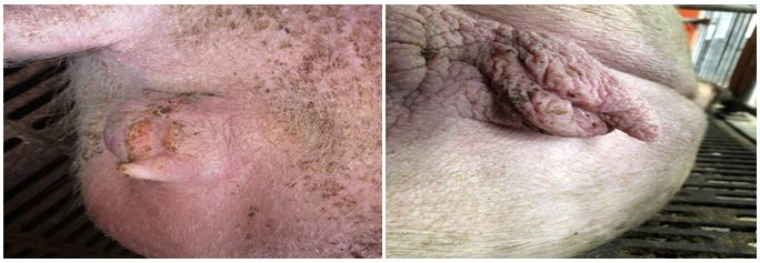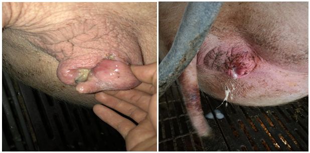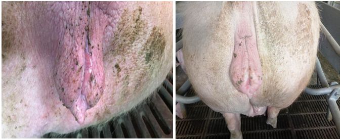 母猪外阴红肿、水肿、无收缩皱纹的需特别注意,如下图分别将三种情况作了列举,但是常常在生产中这三者是并存的,需要及时做处理(三天以内,需用中药类灌注液冲宫让异物排出,促进子宫黏膜修复,然后用头孢或者恩诺沙星进行抗菌消炎。)