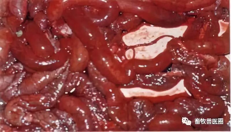 病原为C型产气荚膜梭菌,主要侵害1日龄一3日龄的初生仔猪,病程短,死亡率高;l周龄以上的仔猪很少发病=典型症状:发病开始突然排血样红褐色稀便,偶有呕吐.迅速脱水,体质虚弱,呈中毒性败血性休克,很快死亡=病变主要特征在空肠,外表呈暗红色,肠腔内充满含血的液体,肠系膜淋巴结呈鲜红色,有时病变可扩展到回肠,但胃与十二指肠一般没有明显病变: