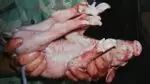 九、一只手捏住假死仔猪的后颈部,另一只手按摩其胸部,直到其复活。