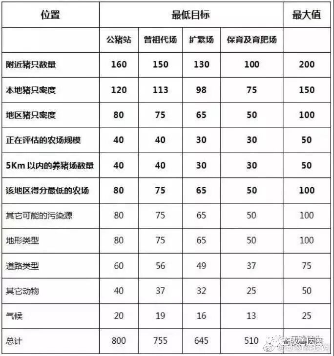 ● 重新进行猪场地理位置与防疫环境评估:可借助软件评分系统或者兽医临床经验、非瘟流行病学调查。评估因素包括附近的村庄养殖的密度、养殖场的距离、主风向、与公路的距离、公路上活体动物过往的频率、地势地形、与河流的距离、与死猪填埋场的距离、与其他养殖场的粪污处理地的距离、与附近屠宰厂的距离等等。