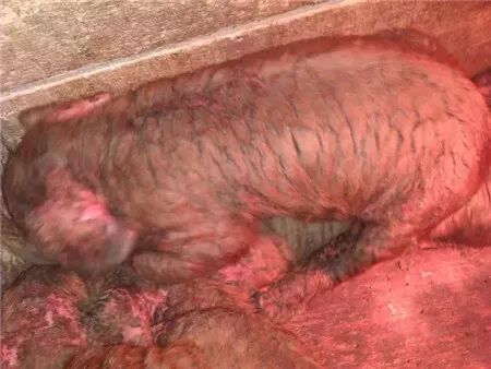 2、本病传染很快,只要有一头仔猪发病1-2天波及全窝,3-5天扩散到几窝或整座产仔舍,一发病应及时、严格隔离,病猪由专门饲养员专人饲养,各种用具应与健康猪隔离使用、病猪栏及走道应彻底消毒,病猪采取相应治疗措施,减少损失。