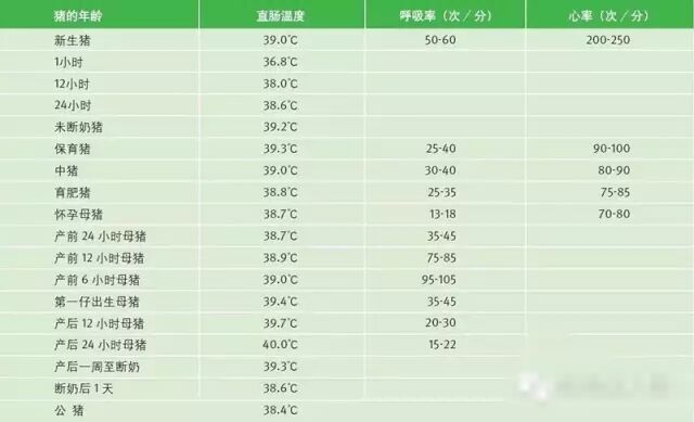 第四部分:不同年龄猪的体温、呼吸、心率正常范围