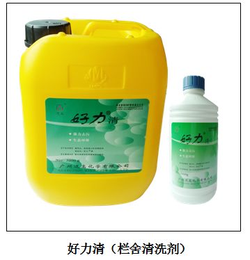 清洗:空舍或空栏后,及时清除舍内的垃圾,用好力清(50倍稀释)泡沫喷洒清洗墙面、顶棚、通风口、门口、水管等处,并整理各种器具。
