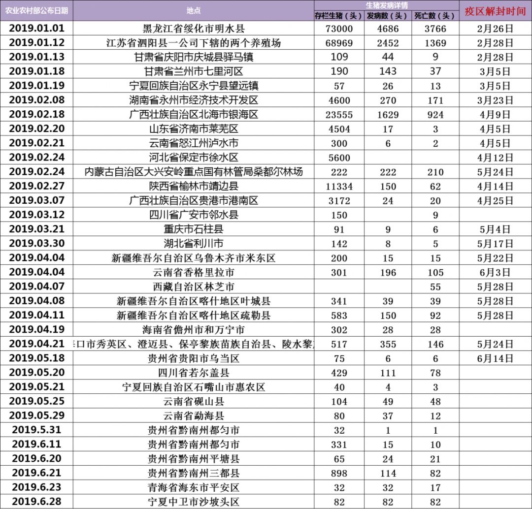 余欣荣指出,经过各方努力,中国的非洲猪瘟防控工作取得了阶段性成效。截至6月30日,已经发生的143起疫情中,有131起解除了疫区封锁,25个省份的疫区全部解除封锁;今年共发生疫情44起,除4月份外,月均发生数保持在个位数。