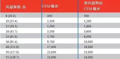 注意:CFM的定义是每分钟空气的立方英尺流量。