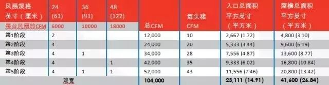 • 每1200头的生长到育肥空间两台250,000 Btu加热器