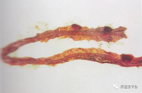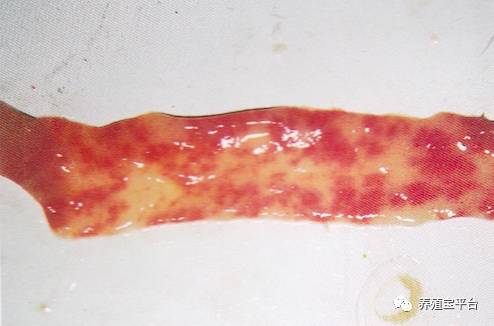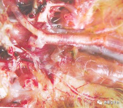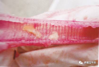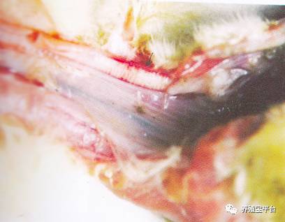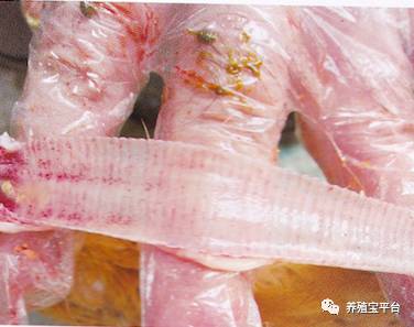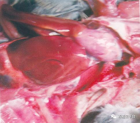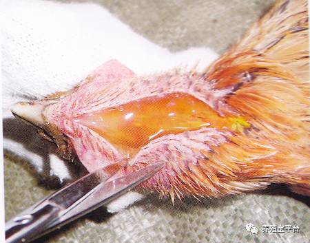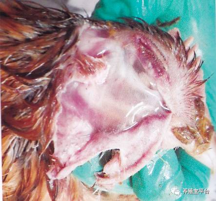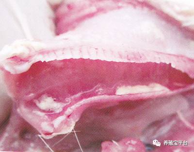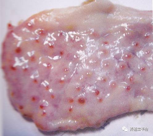 鸡新城疫是由副粘病毒引起的一种急性高度接触性传染病。 (一) 临床症状 1、典型新城疫的临床症状 一般未做过新城疫免疫的鸡或免疫失败的鸡群易被强毒株感染,发病率和死亡率尚。病鸡体温升尚,精神沉郁,食欲下降或消失,排黄绿色稀便,闭眼,缩颈,翅下垂,呼吸困难,发出“呼噜呼噜”的喘鸣音,口中黏液增多,嗉嚢膨大,内充满液体和气体,倒提时口流黏液,鸡表现扭头、转圈的神经症状。 2、非典型新城疫临床症状 曾经做过新城疫免疫的鸡群易出现非典型新城疫症状,发病率和死亡率低。表现为食欲下降,生长发育缓慢,开产时间延长,很难上髙峰,或产蛋高峰时间短,鸡群中发出“咔咔”的叫声,好像喉咙被堵塞后发出的声音,患病时间长的鸡也会出现神经症状。 患病雏鸡张口呼吸 患病雏鸡头颈下垂 患病雏鸡勾头神经症状 (二) 剖检病变 1、典型新城疫剖检病变 典型的新城疫的病变比较明显,嗉囊空虚,充满酸臭味液体或气体,食道与腺胃交界处或腺胃与肌胃的交界处有出血点或出血带;腺胃乳头出血;肌胃角质层下出血;肠道外现可见紫红色、枣核样肿大的肠道淋巴结,剖开肠道可见突出于肠黏膜表面的坏死、溃疡;盲肠扁桃体肿大、出血、坏死;直肠黏膜有点状或条状出血;卵泡液化,腹腔内有浅黄色浑浊的液体;喉头有出血点,气管环出血,气管内有带血的黏液。 2、非典型新城疫的剖检病变 非典型新城疫病变比典型的新城疫病变轻,腺胃仅有少量乳头出血或不出血,或乳头间出血或仅见腺胃局部潮红,肠道淋巴结隆起出血,卵泡变形呈菜花状,有时卵泡出现血肿,喉头气管轻微出血,气管内仅有少量的血痰。 腺胃粘膜肿胀,乳头出血 小肠浆膜下可见出血环或出血斑 肠道黏膜紫红色出血性溃疡斑 肠道黏膜有芝麻大至黄豆大鲜红出血斑 肠道黏膜弥漫性出血斑 腺胃肿胀,粘膜增厚,乳头肿大出血 二、禽流感 禽流感是由A型流感病毒又称正粘病毒感染发病引起的禽类的一种严重的传染性疾病。 (一) 临床症状 典型的禽流感病鸡通常体温升髙,精神沉郁,食欲下降,消瘦,母鸡产蛋量下降,呼吸道症状表现不一,咳嗽、喷嚏,罗音,呼吸极度困难,似传染性喉气管炎、或似传染性支气管炎症状。病禽羽毛松乱,身体卷缩,头和面部水肿,冠和肉髯发绀,有时出现神经症状,排黄绿色稀便,跗关节肿胀,脚趾鳞片出血,死亡率高,死后冠髯呈紫黑色,以上症状可单独出现或几种症状同时出现。温和型禽流感症状轻微,死亡率低,一般出现产蛋大幅下降,或少量死亡。 眼睛粘膜出血 鸡腿鳞片呈紫色 头部和眼睑肿胀,下颌部水肿 鸡冠和肉髯发紫 皮肤发紫 (二) 临床症状 禽流感的病变可涉及消化系统、泌尿生殖道系统、神经系统、呼吸道系统。腺胃乳头基部出血,并有刮不完的灰白色分泌物。胰腺或胰腺边缘出血,有时有半透明的坏死灶。卵泡出血,输卵管、子宫水肿、充血、出血,输卵管内有多量灰白色似浆糊样的分泌物。肾脏肿胀,严重者呈花斑状。产蛋鸡易继发大肠杆菌病,严重者多呈卵黄性腹膜炎,腹腔内有多量灰白浅黄或卵黄样液状物,喉头气管黏膜有多少不一的点状出血和带血的分泌物。当并发支原体、鼻炎、大肠杆菌病混合感染时,部分病鸡出现肿头综合症,胸、腹气囊下有干酪样物;当并发喉气管炎时,气管内有多量带血的黏液,气管黏膜水肿、出血,气管环出血;当并发支气管炎时,气管和支气管内有黄白色干酪样物。 下颌部皮下淡黄色胶样浸润 下颌部皮下胶样浸润 肝脏肿大,有弥漫性大小不易出血斑点和灰白色坏死点 肝脏肿大,有条状和块状出血 心内膜条状出血 患病母鸡卵泡膜充血,出血,有的呈紫葡萄状,有多个卵泡变形 心肌灰白色坏死斑 患病母鸡蛋白分泌部黏膜出血、充血,腔内有凝固蛋白 三、禽痘 禽痘是由痘病毒引起的家禽和鸟类的一种传染病,该病一年四季均可发生。根据病鸡的症状和病变分为黏膜型、皮肤型和混合型三种。 (一) 临床症状 由于危害严重的是黏膜型鸡痘,故只介绍黏膜型鸡痘的临床特征。该型鸡痘在口腔、咽喉、气管黏膜长出痘斑,造成病鸡伸颈张口,呼吸困难,发出类似传染性喉气管炎“吼吼”怪叫声。 (二) 剖检病变 黏膜型喉痘病变主要在口腔、咽喉和气管黏膜表面生成黄白色小结节,稍突出于黏膜表面,以后小结节逐渐增大融合,形成一层黄白色干酪样假膜,覆盖在黏膜上面。随着病情的发展,假膜逐渐扩大和增厚,堵塞在口腔和咽喉部,使病鸡呼吸和吞咽受到影响,严重时嘴无法闭合。 雏鸡眼睛无毛处皮肤和冠有疣状结节 腿部无毛处有疣状结节 四、传染性喉气管炎 传染性喉气管炎是由疱疹病毒引起的各种日龄均可感染的鸡急性呼吸道病。 (一) 临床症状 最明显的症状是鸡呼吸困难,努力向前上方伸颈张口呼吸,发出“吼吼”的怪叫声,类似青蛙的叫声。病鸡呈痉挛性咳嗽并咳出带血的黏液或血块。 精神不佳,闭眼,张口呼吸,鸡冠尖部发紫 张口呼吸,流眼泪和鼻涕,肉髯发紫 (二) 剖检病变 急性喉气管炎病鸡喉头和气管黏膜肿胀、充血、出血,严重者糜烂、坏死,气管内有多量的血样黏液及血凝块;慢性喉气管炎病鸡喉头、气管内有淡黄色干酪样渗出物。 喉头粘膜有弥漫性大小不一鲜红出血,气管粘膜有散在性出血 浆膜和黏膜出血,呈红色器官,两侧肺组织呈黑色病变 分离株病毒接种SPF鸡胚,死亡鸡胚肝脏呈“绿色肝” 五、传染性支气管炎 传
