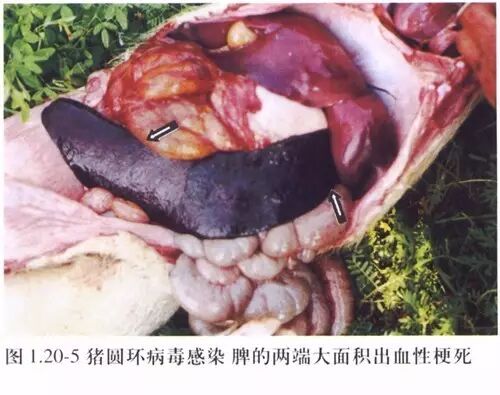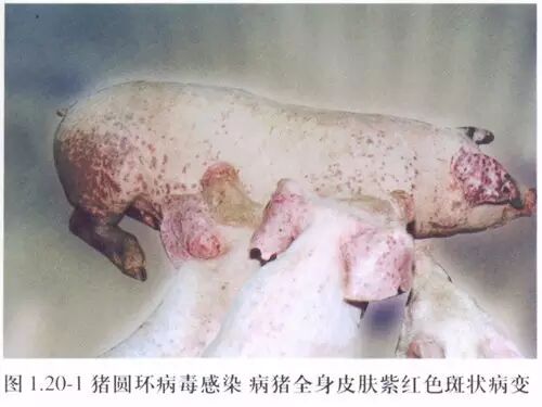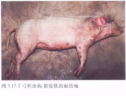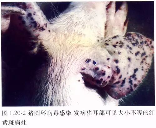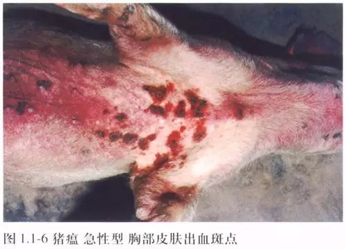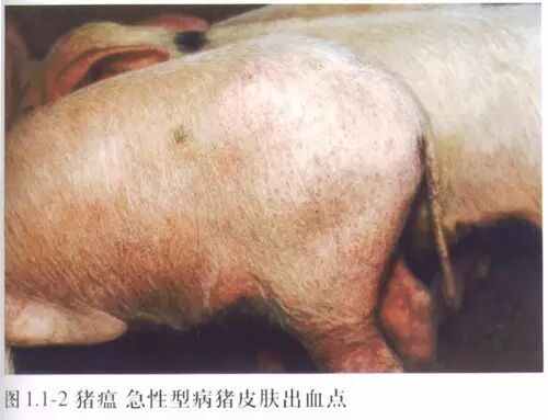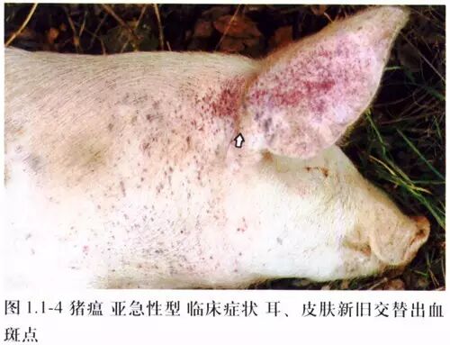 亚急性型猪瘟病猪耳朵、皮肤新旧交替出血斑点
