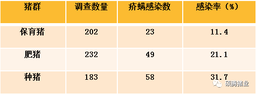 表1 规模化猪场的疥螨感染情况