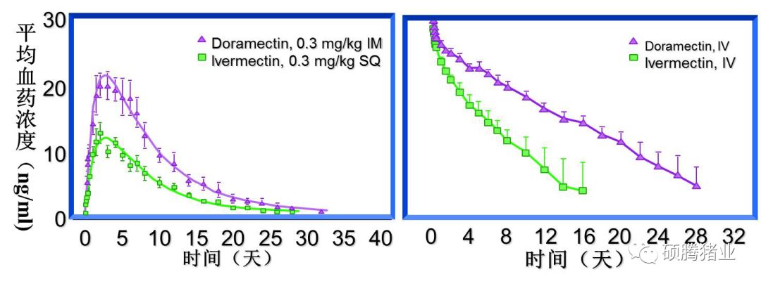 选择新型的抗体内外寄生虫药物——“通灭”(Doramectin)进行驱虫,“通灭”的血药浓度高且持续时间长,血中最高浓度是伊维菌素(Ivermectin)的2倍(图1)。