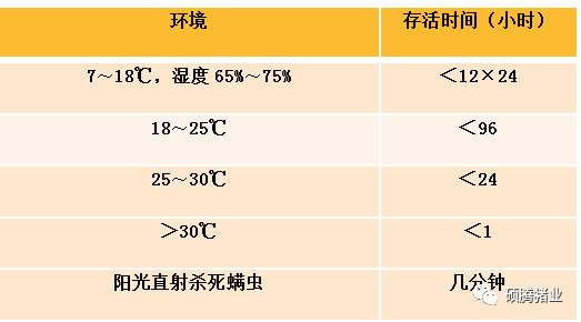 表2 不同环境条件下疥螨的存活时间