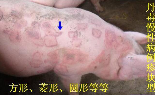 猪丹毒是由猪丹毒杆菌(或丝状菌)所引起的一种猪的急性、热性传染病,俗称“打火印”。临床上急性猪丹毒的特征为败血症和突然死亡。亚急性猪丹毒患猪的皮肤则可出现红色疹块。慢性型表现非化脓性关节炎和疣性心内膜炎。该病菌可引起人的类丹毒,表现为皮肤的局部疹块。本病主要发生于架子猪,哺乳猪和成年猪发病较少。