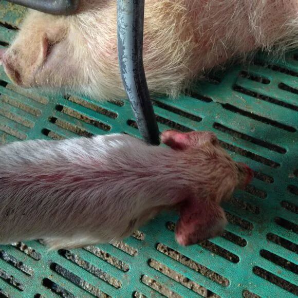急性病例皮肤发红,母猪发生流产,即使使用抗菌素治疗感染母猪,但分娩后往往会引发严重病症,哺乳母猪发病表现慢性跛行,可引起母性行为极端弱化。