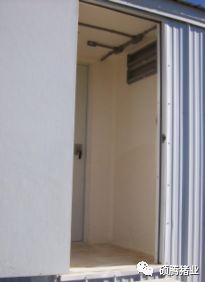 一旦排风时间结束,里面的门就能够打开,此时个人/猪可以进入到圈舍内部, 或者打开外面的门离开隔离间,到圈舍以外。