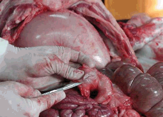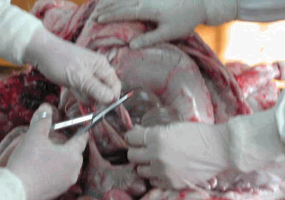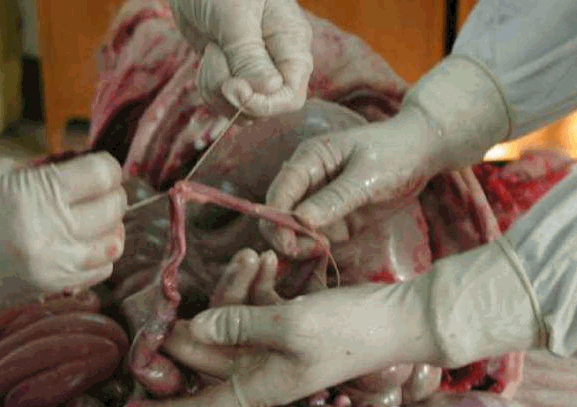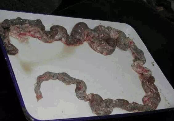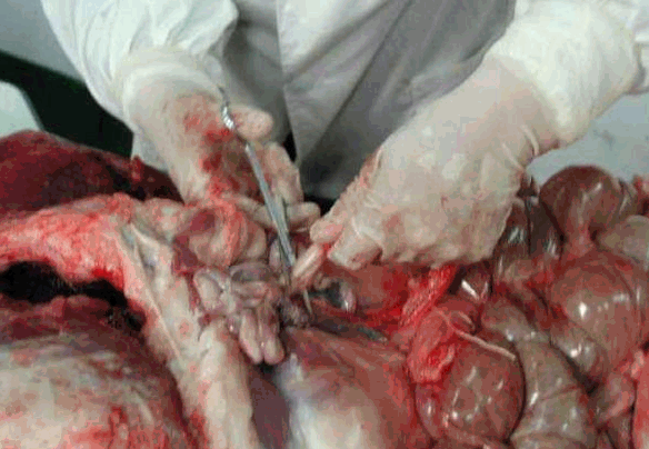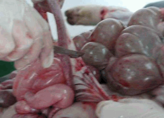 取出腹腔的各器官后要逐一的细细检查,可按脾、肠、胃、肝、胆、肾、膀胱的次序检查。