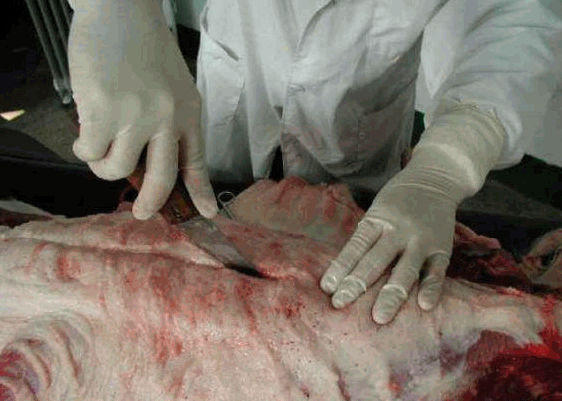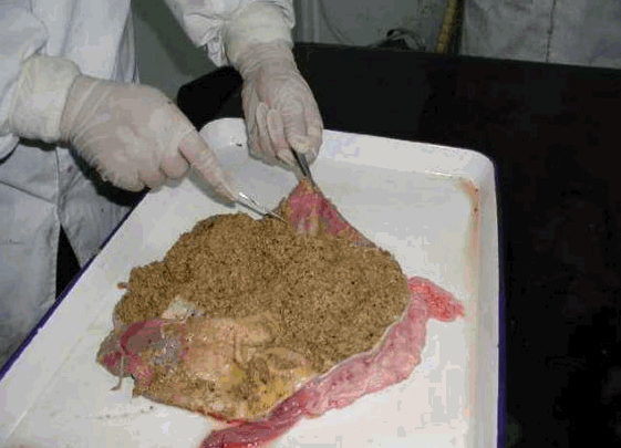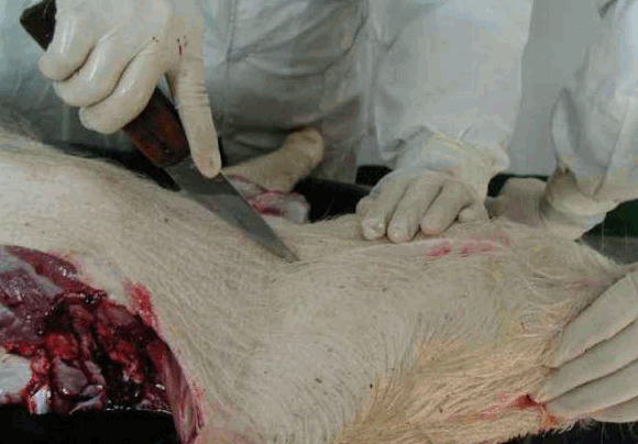 3.剖检过程中要注意个人的防护,剖检人员必须带手套,防止手划伤感染。