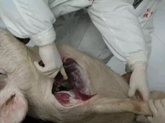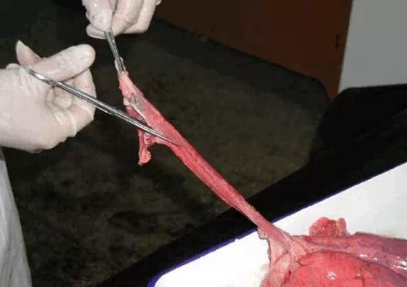 再将气管剖开,是否有大量泡沫,如有,可能是胸膜肺炎。