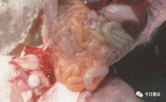 △【猪伪狂犬病】仔猪小肠内充满黄色稀便和气体