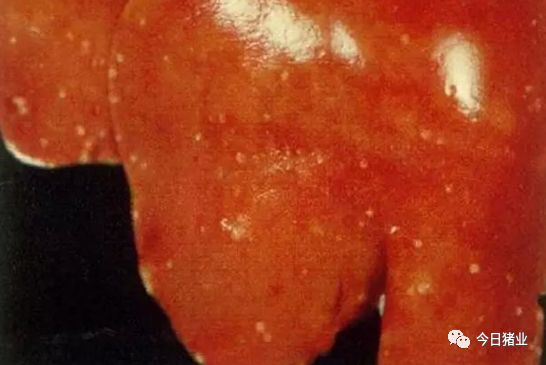 △【猪伪狂犬病】肝脏表面可见散在的坏死点